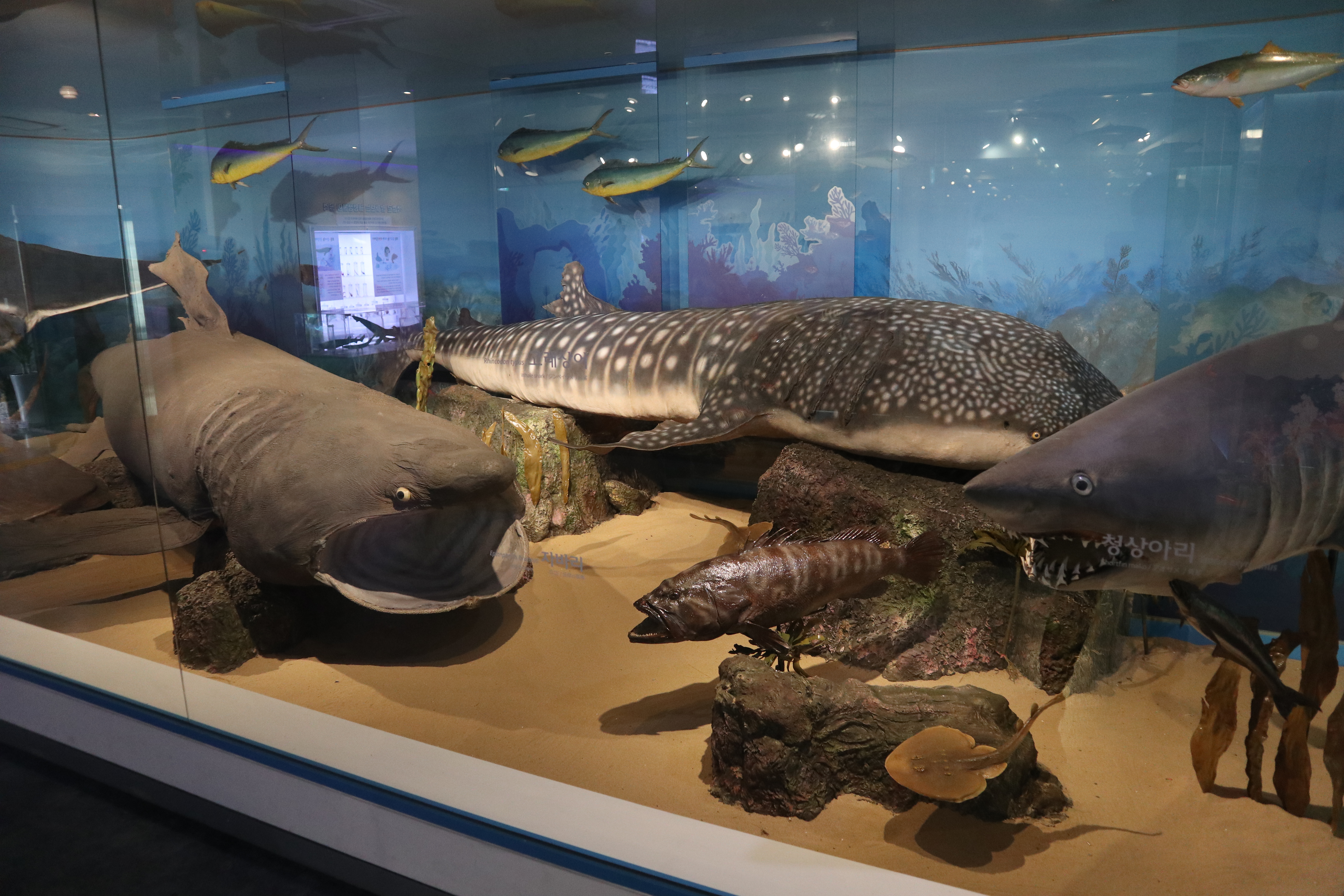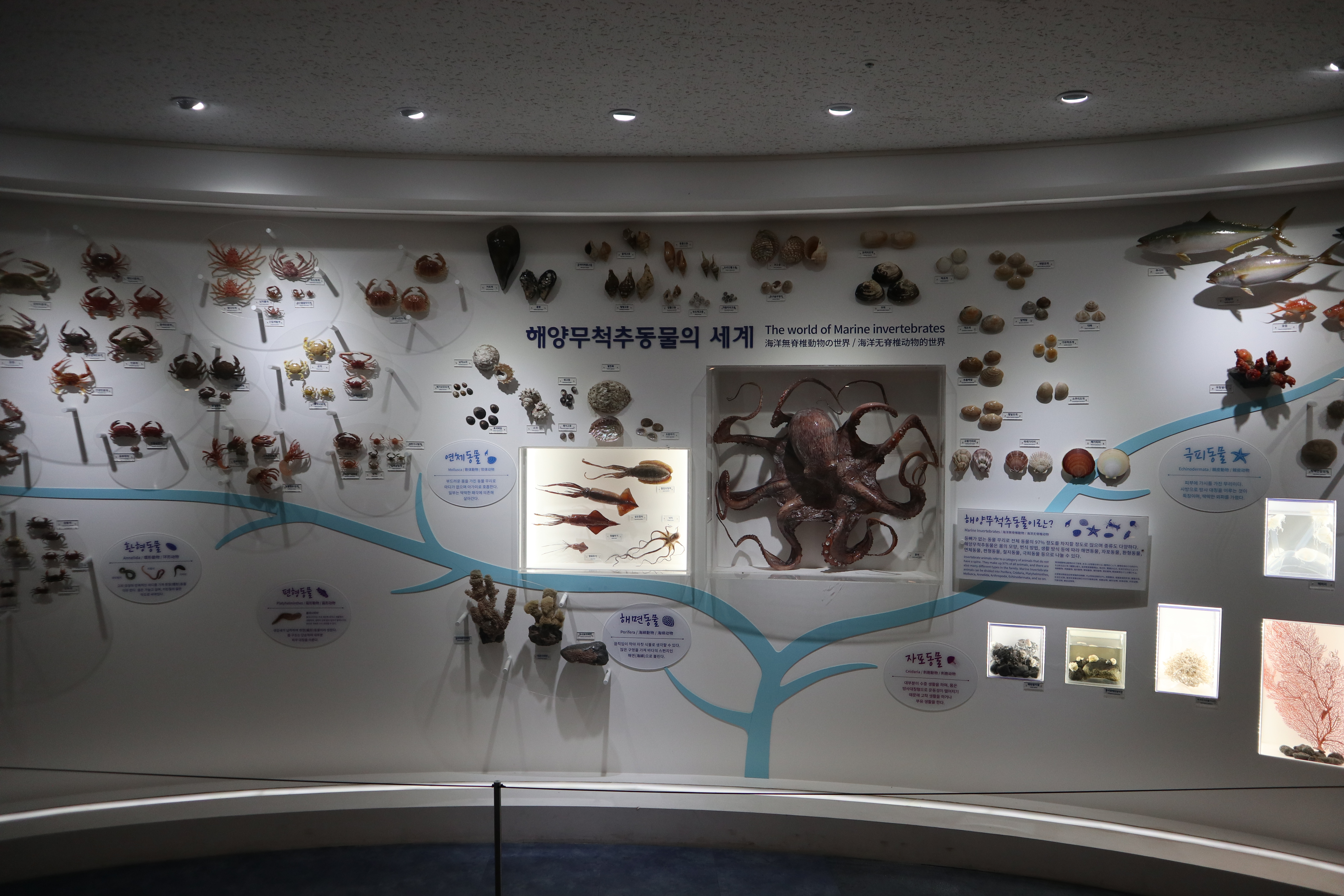 여러 해양생물들의 실제 모형과 설명들이 있는데 제주 해양만의 특색이 있는 생물들이 특히 많아서 좋았습니다.