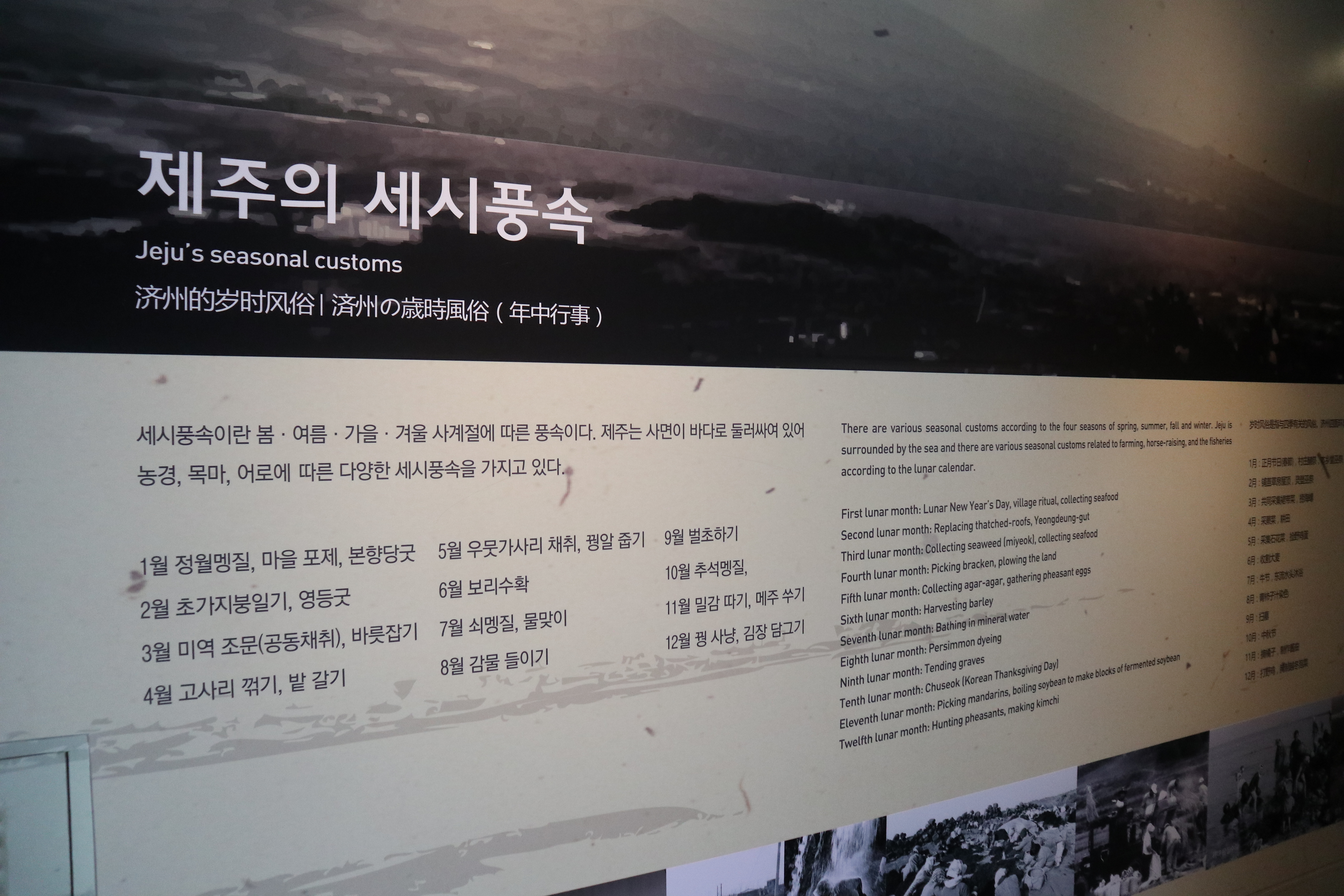 민속전시실(2) 또한 제주의 민속양식을 보여줍니다. 이곳에서는 제주의 세시풍속, 민간신앙, 특산품 등을 보여줍니다.