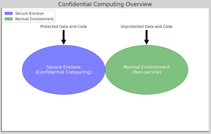 - Secure Enclave (Confidential Computing): 보안이 중요한 데이터와 코드가 실행되는 격리된 환경입니다. 이 환경은 외부에서 접근이 불가능하며, 데이터를 보호합니다.
